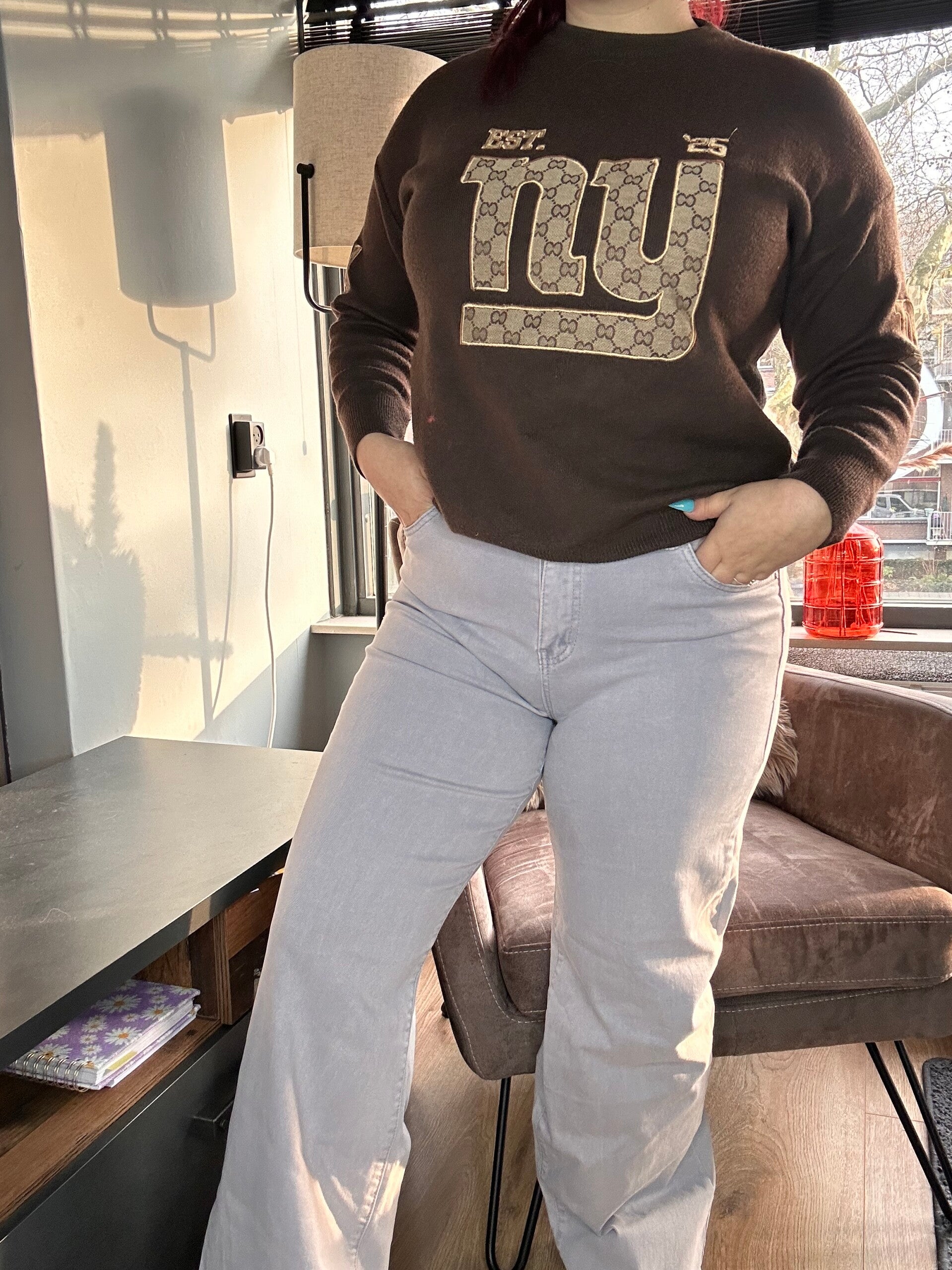 Jeans heeft stretch. Model op de foto heeft maat 44 en is 1,65