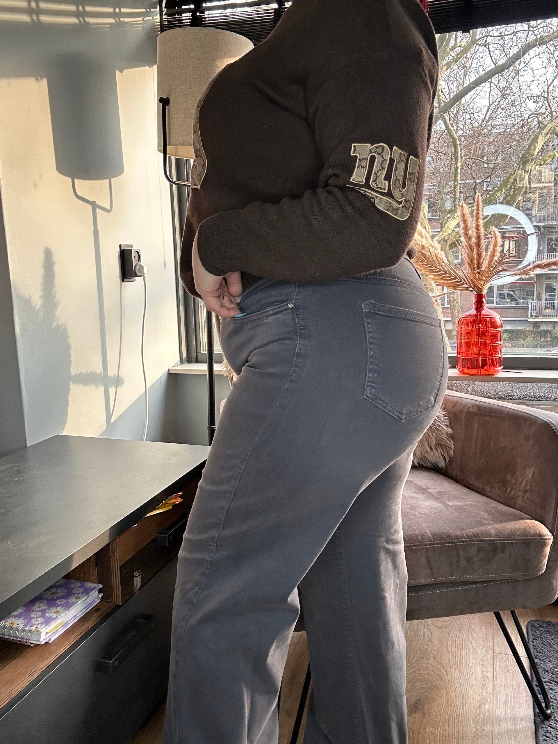Jeans heeft stretch. Model op de foto heeft maat 44 en is 1,65