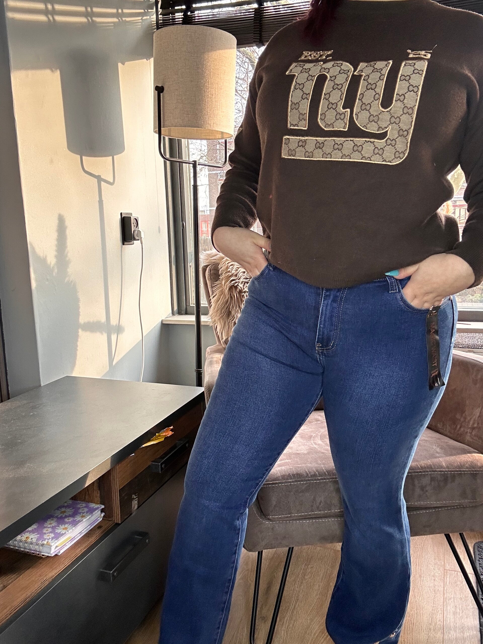 Jeans heeft stretch. Model op de foto heeft maat 42 aan en is 1,65