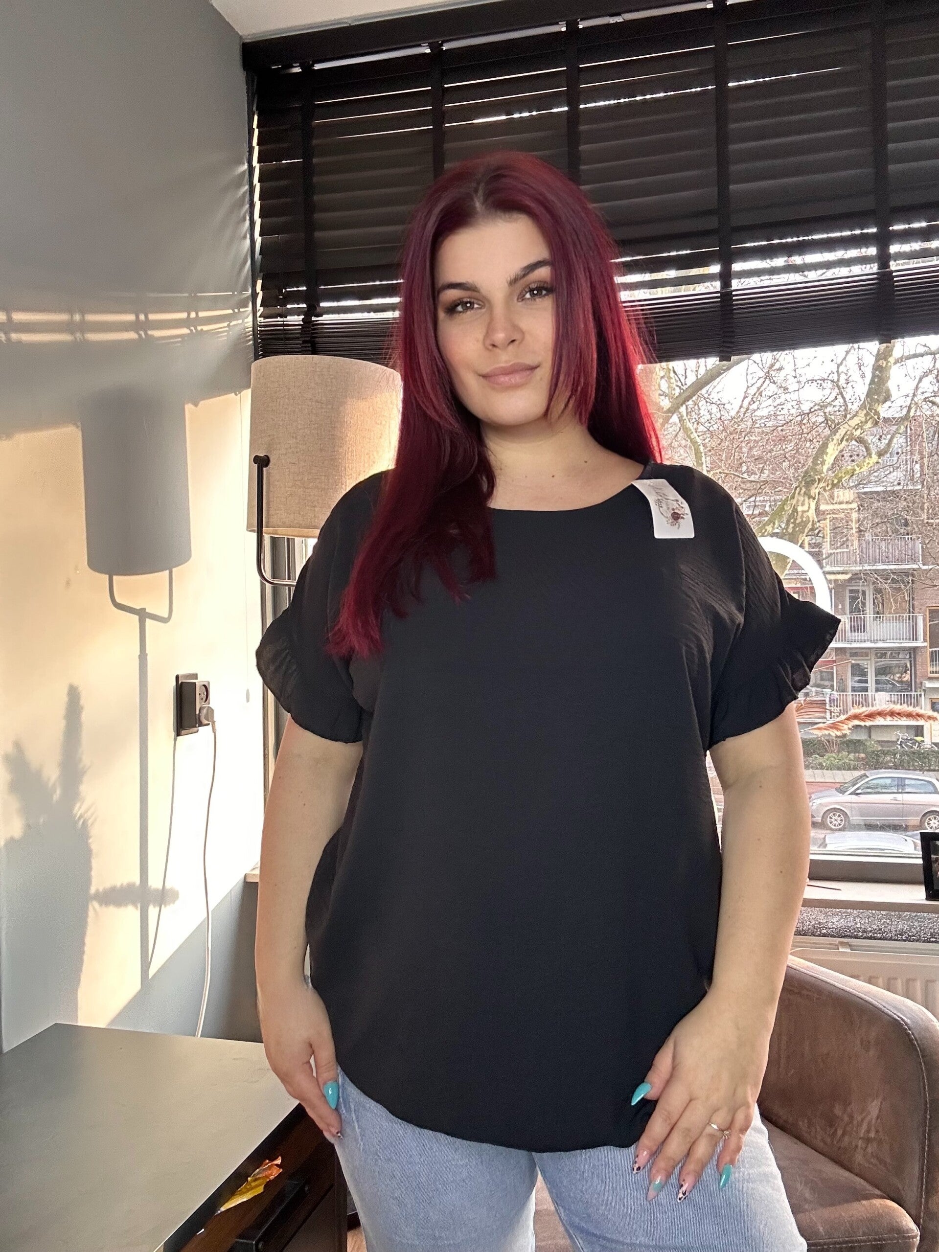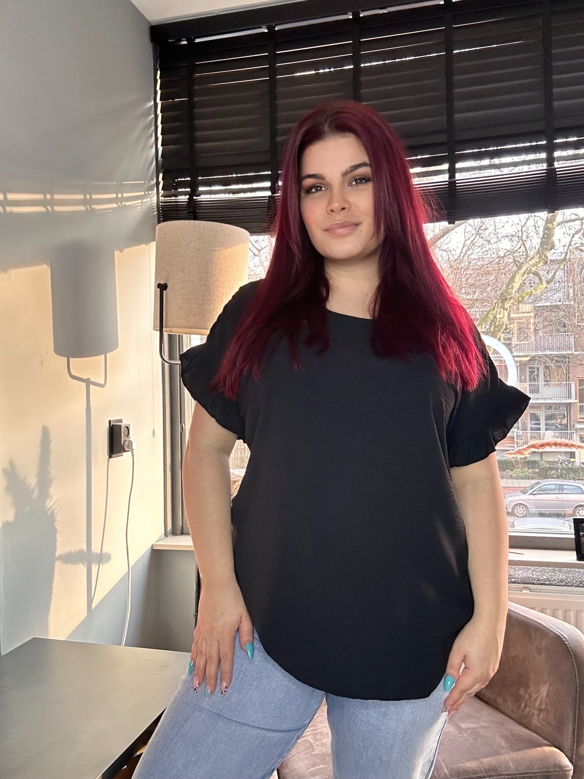 Blouse one size. Model heeft zelf een m/L en is 1,65 lang