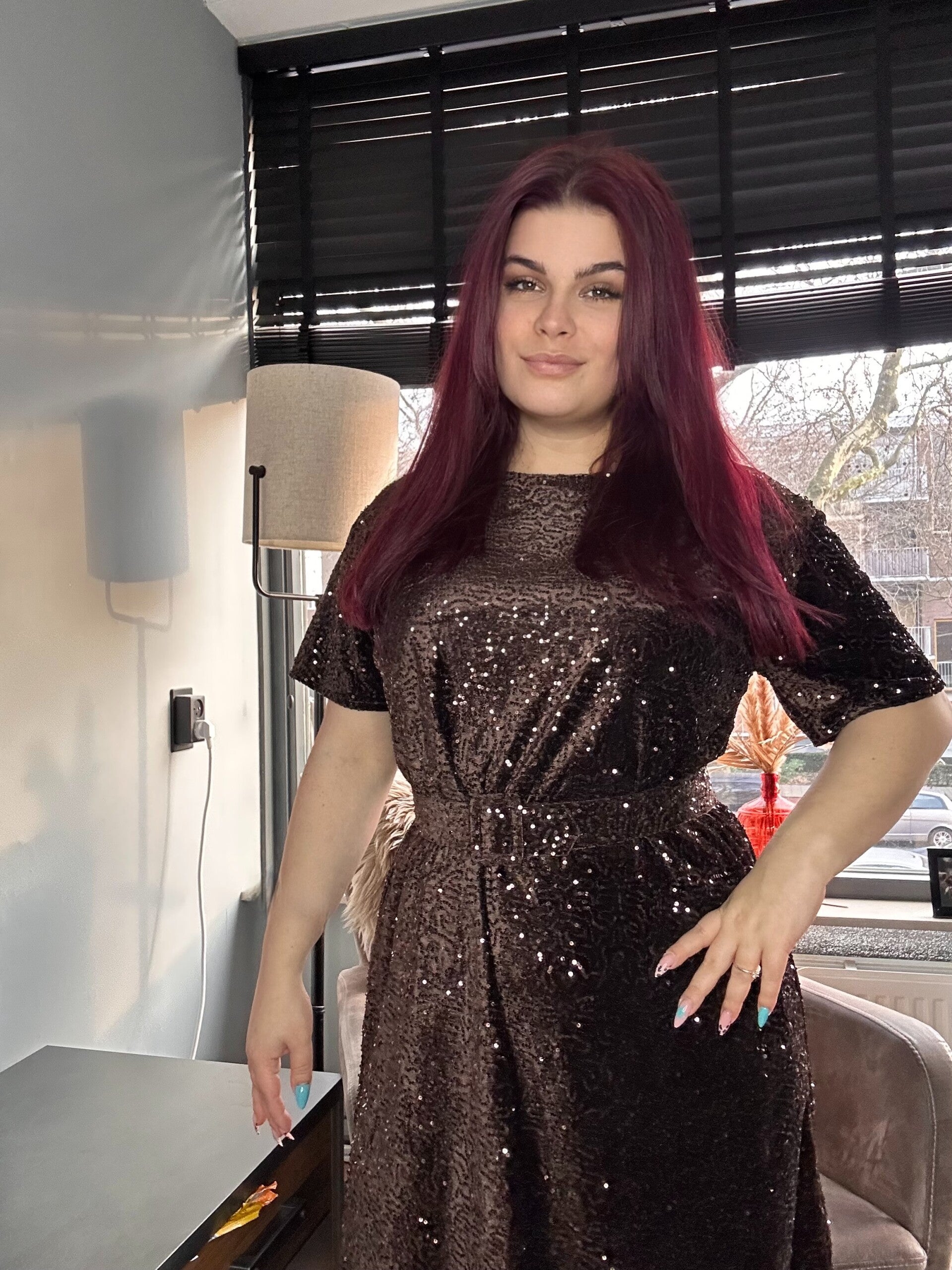 Blouse one size. Model heeft zelf een m/L en is 1,65 lang