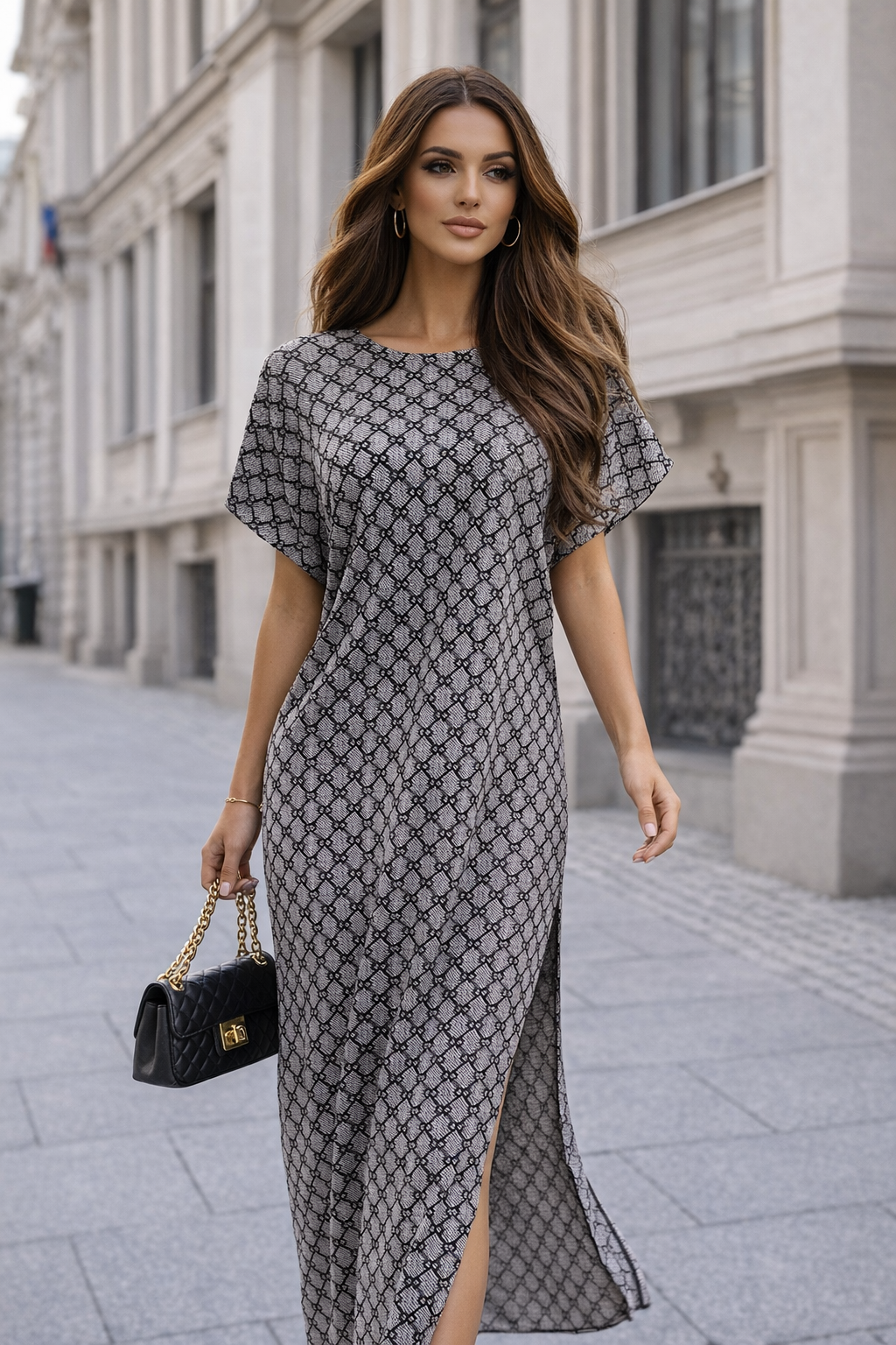 Voel je elegant, zelfverzekerd en helemaal in je luxe era met de Milano Muse Maxi Dress. Deze lange jurk straalt pure klasse uit en geeft je moeiteloos die chique designer-look — maar dan voor een prijs waar je blij van wordt.